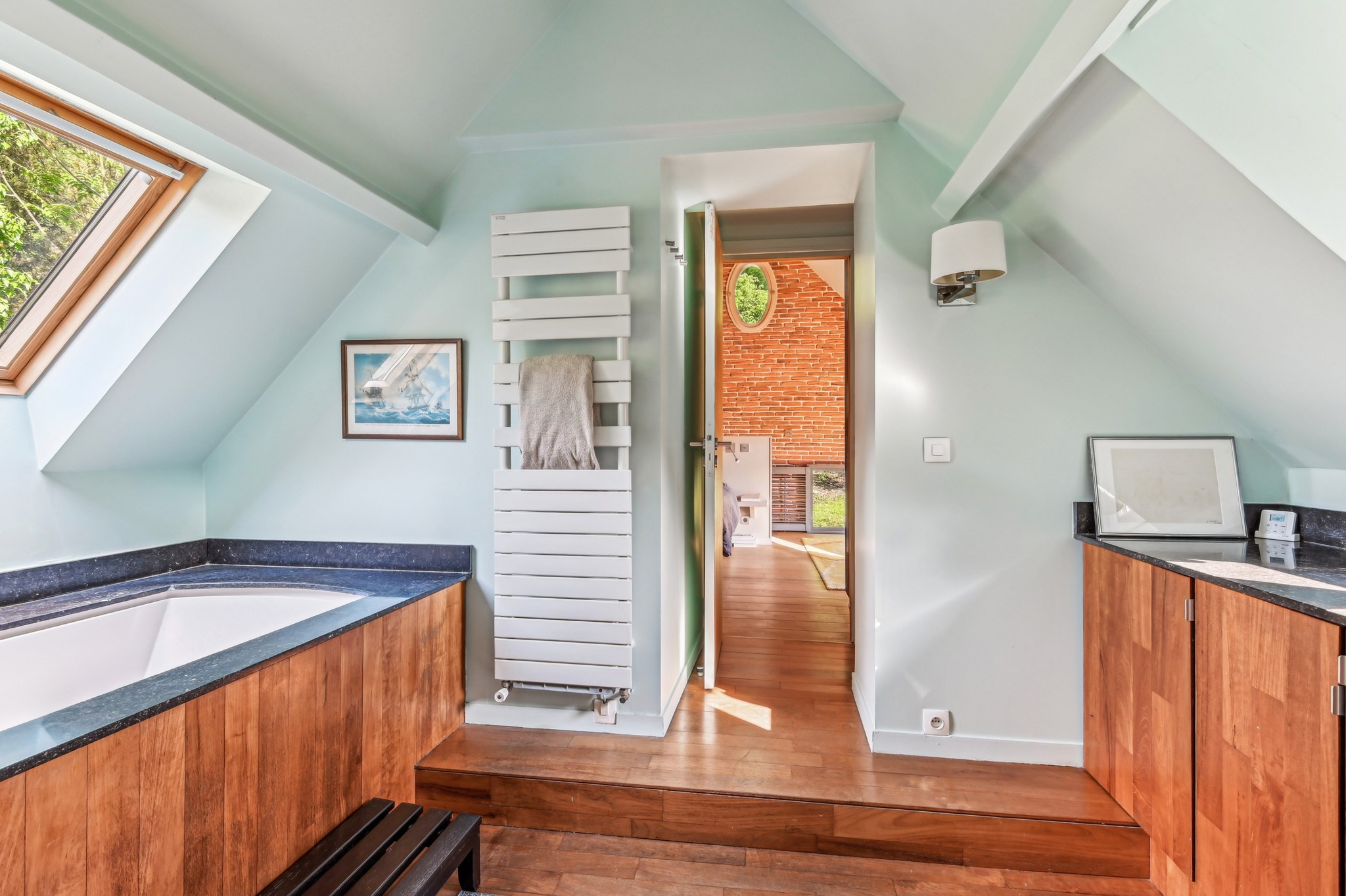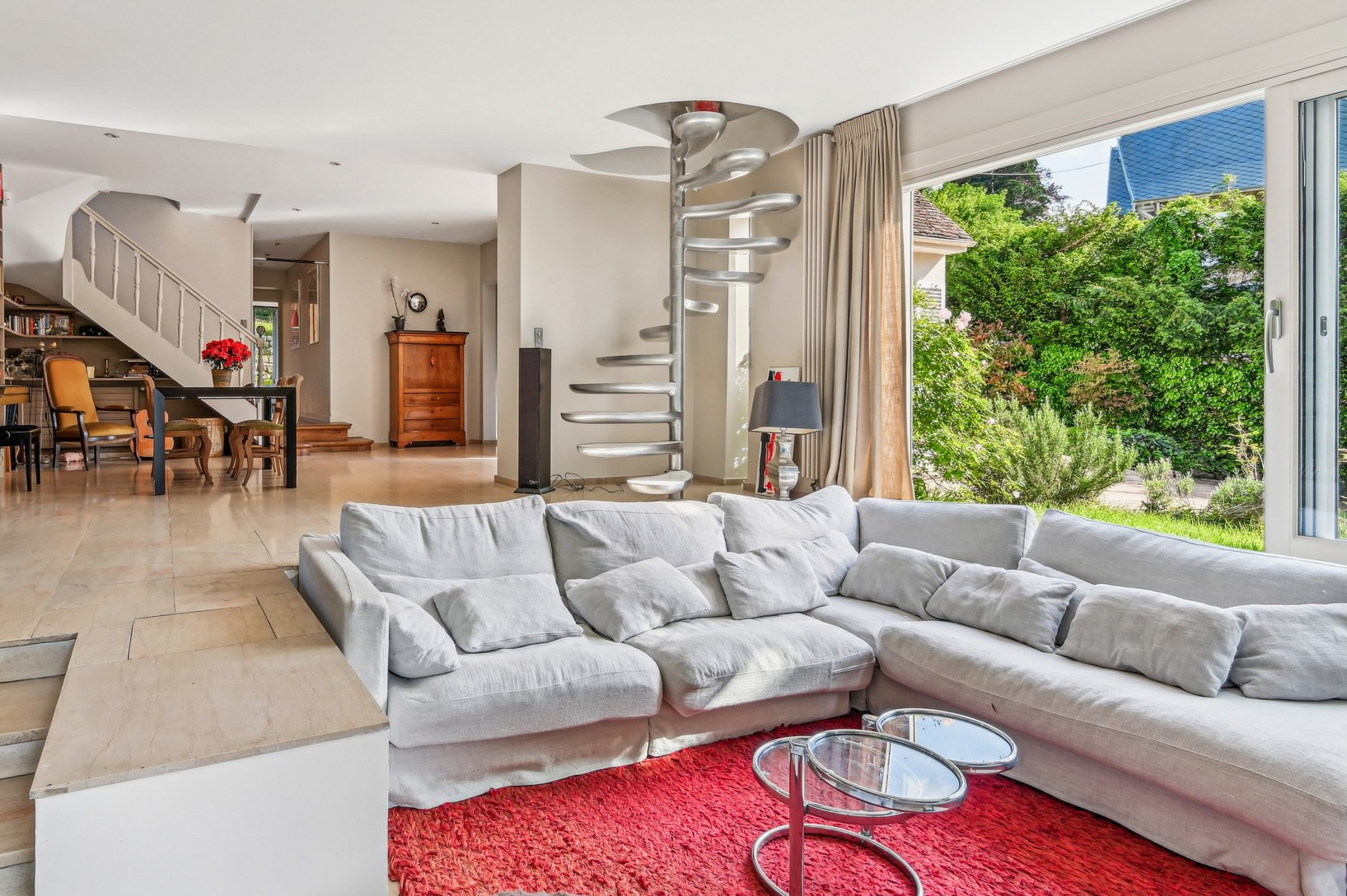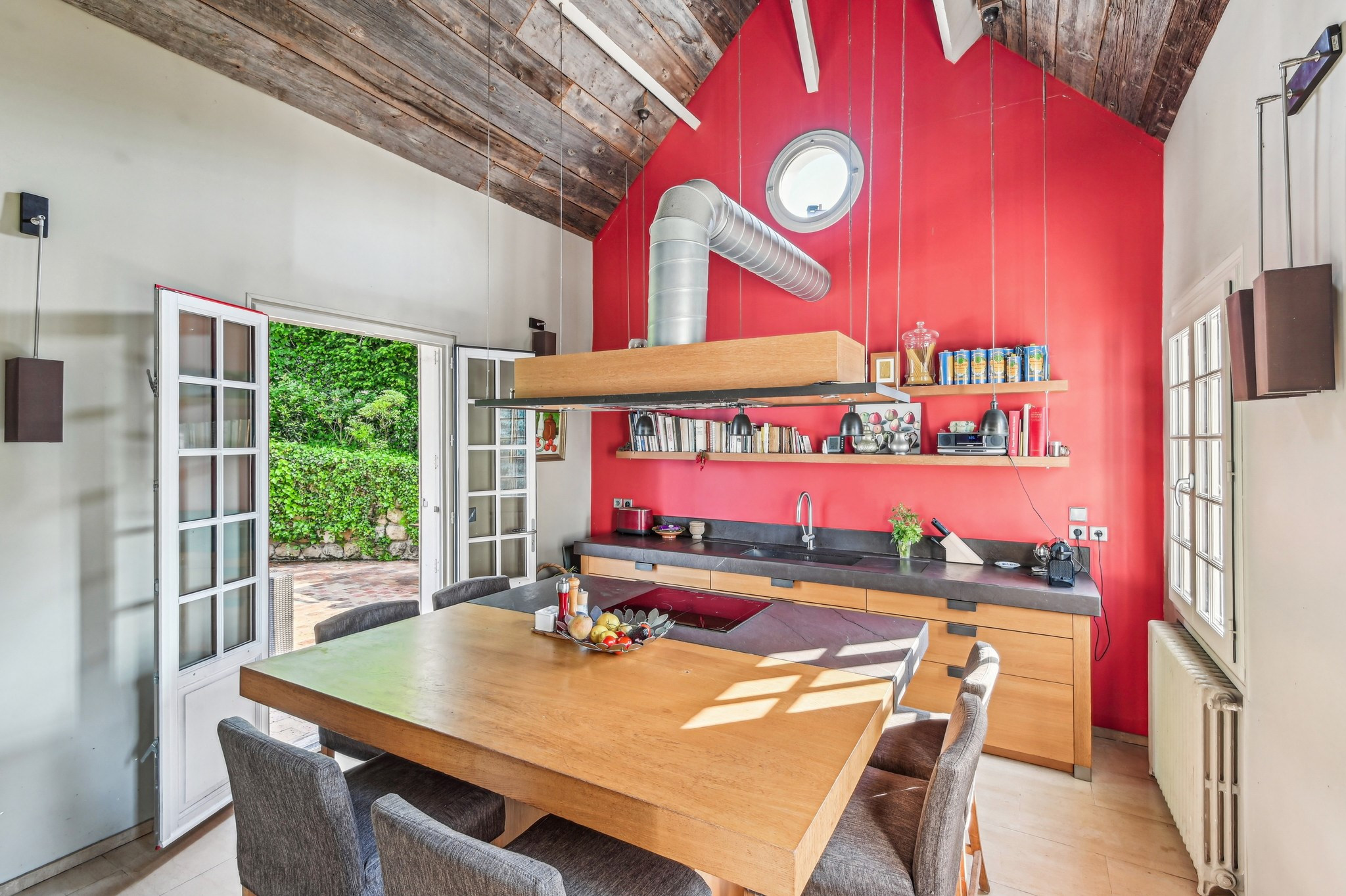 Idéalement située dans l'enceinte du très recherché et exclusif domaine privé du Parc de la Malmaison, sur un beau terrain arboré piscinable, cette propriété offre un cadre de vie familial privilégié totalement au calme et à l'abri des regards. Très ensoleillée (traversante Est/Ouest), la maison comprend : grande pièce de vie de 70 m² avec cheminée, belle cuisine dînatoire avec toit cathédrale et arrière-cuisine, 4 chambres, grand bureau (ou salle de sport), salle de bains, 2 salles d'eau, 3 wc. Sous-sol total avec buanderie, chaufferie, cave à vin. Dans la dépendance : studio de 35 m² avec kitchenette, salle d'eau et wc. Garage.