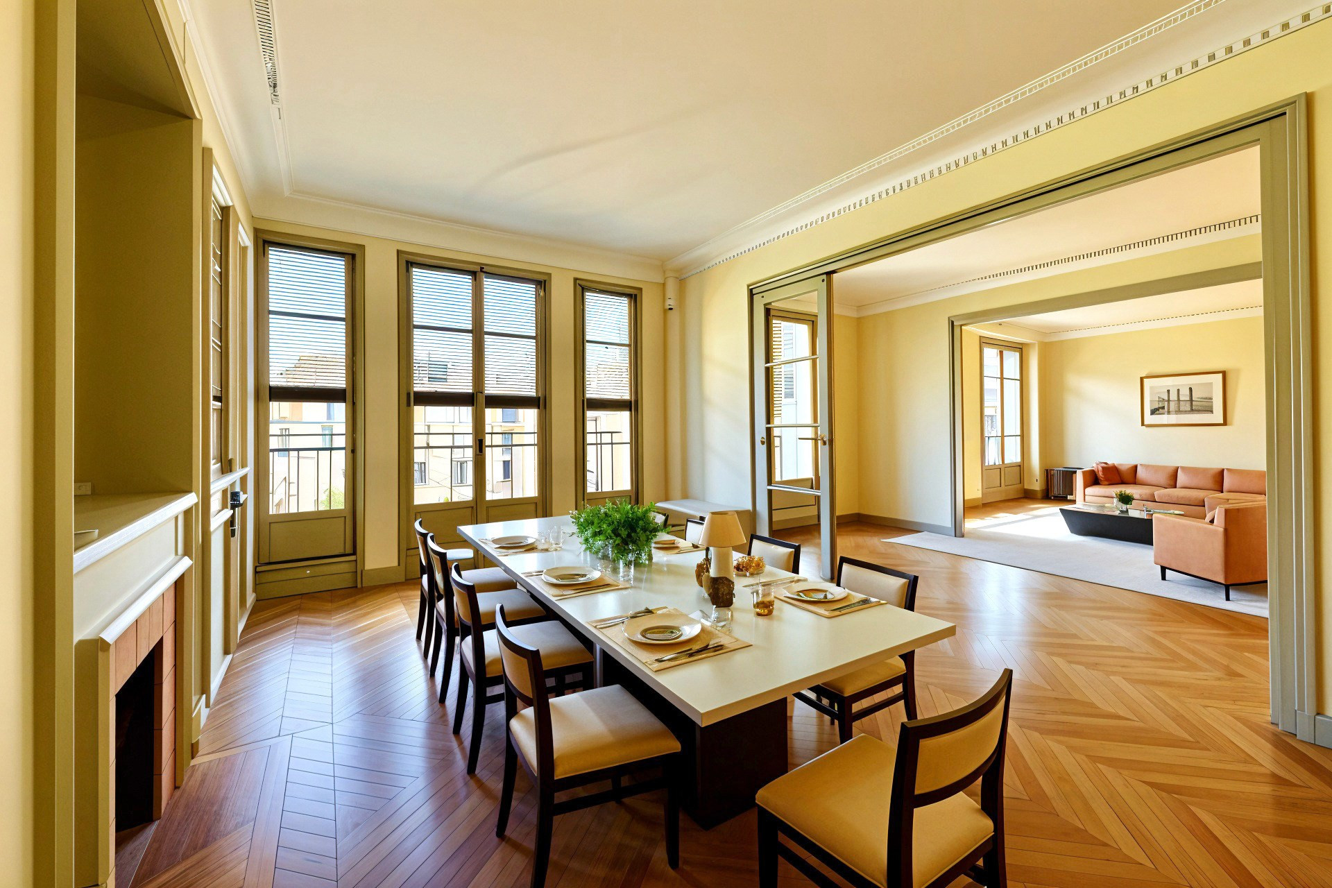 Au 6ème étage d'un bel immeuble Art Déco situé à proximité de la place Péreire et de l'école Sainte-Ursule, appartement d'angle très lumineux avec vue dégagée sans vis-à-vis (vue Tour Eiffel). Galerie d'entrée, double séjour de 44 m² avec parquet en point de Hongrie, moulures, cheminée et balcon, bureau (ou 4ème chambre), cuisine séparée, 3 grandes chambres (16, 16 et 15 m²), salle de bains, 2 salles d'eau, 2 wc. 2 caves. Gardien. Beaux volumes (hauteur sous plafond : 2,95 m). Possibilité d'acquérir en sus un grand garage (voiture + moto) : 55 000 euros.