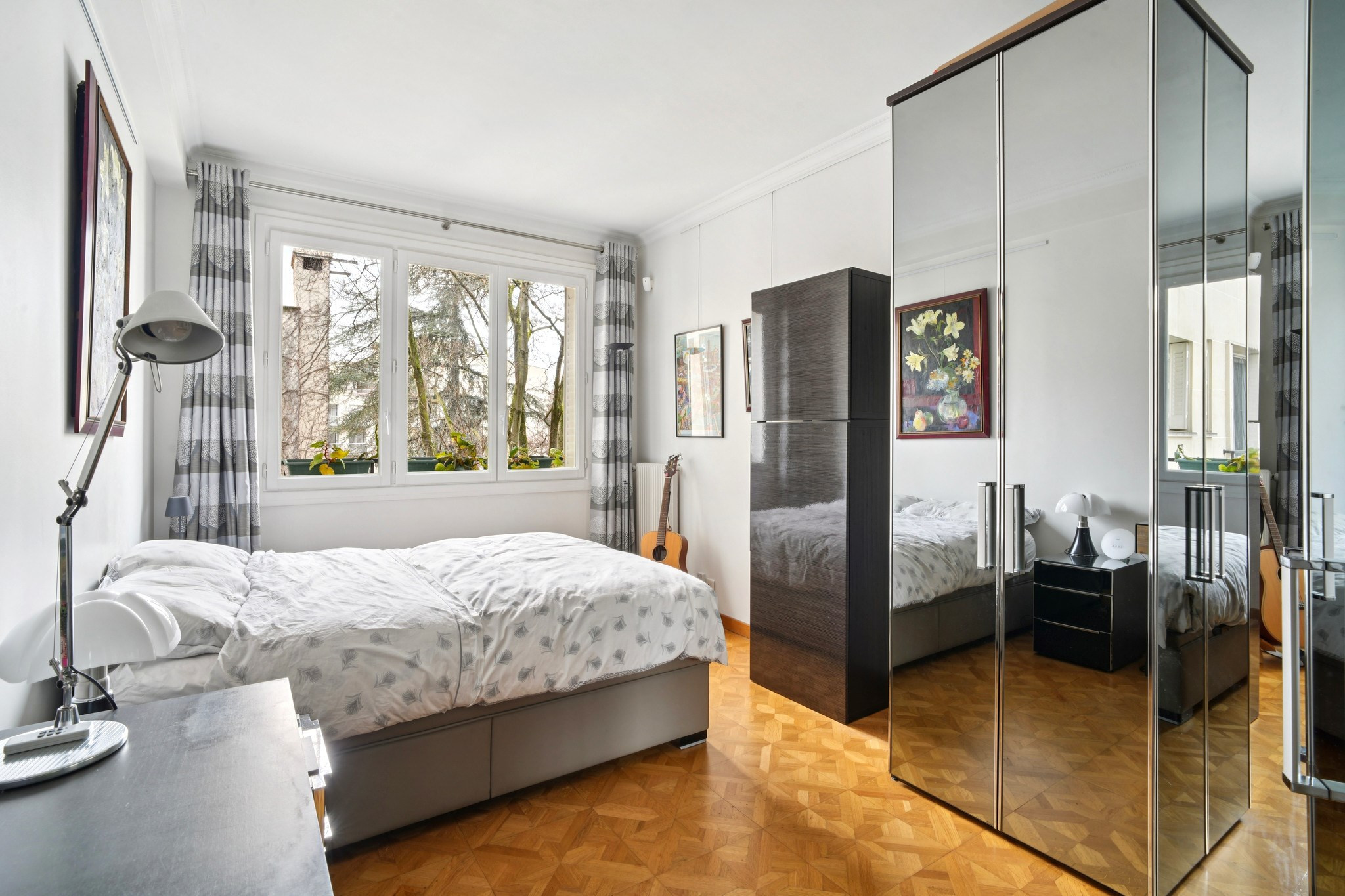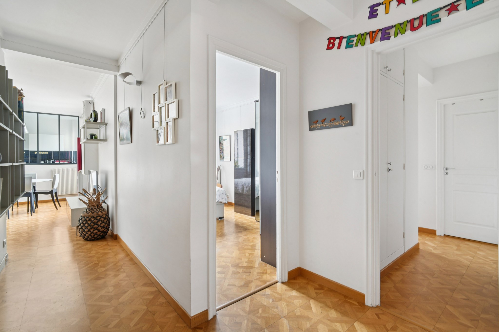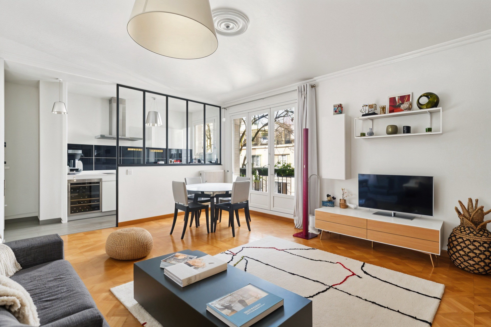 Au 3ème étage d'une copropriété familiale parfaitement entretenue, appartement en parfait état, totalement au calme sur jardin, avec vue dégagée sur le ciel et la verdure. Entrée, double séjour de 32 m² avec cuisine américaine, 2 belles chambres (14 et 12 m²), salle de bains, wc séparés. Cave. Gardien. Finitions et matériaux haut de gamme. Excellent plan sans perte d'espace. Électricité aux normes. DPE : D. Possibilité d'acquérir un parking en sous-sol (25 000 euros).