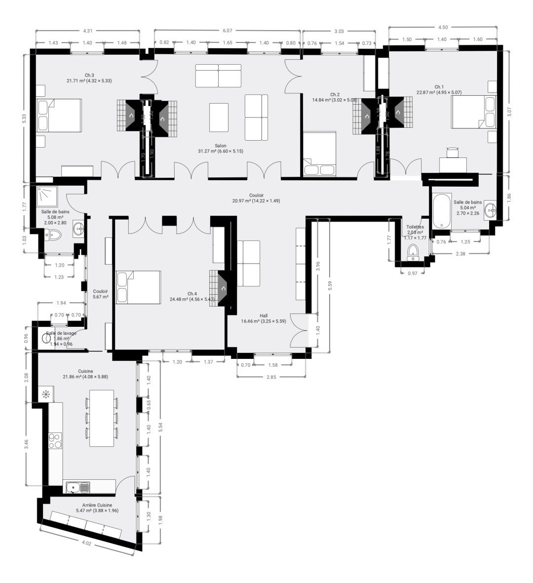 Paris 8ème • Europe • Batignolles • appartement 206 m² • 4ème étage • 3/4 chambres.