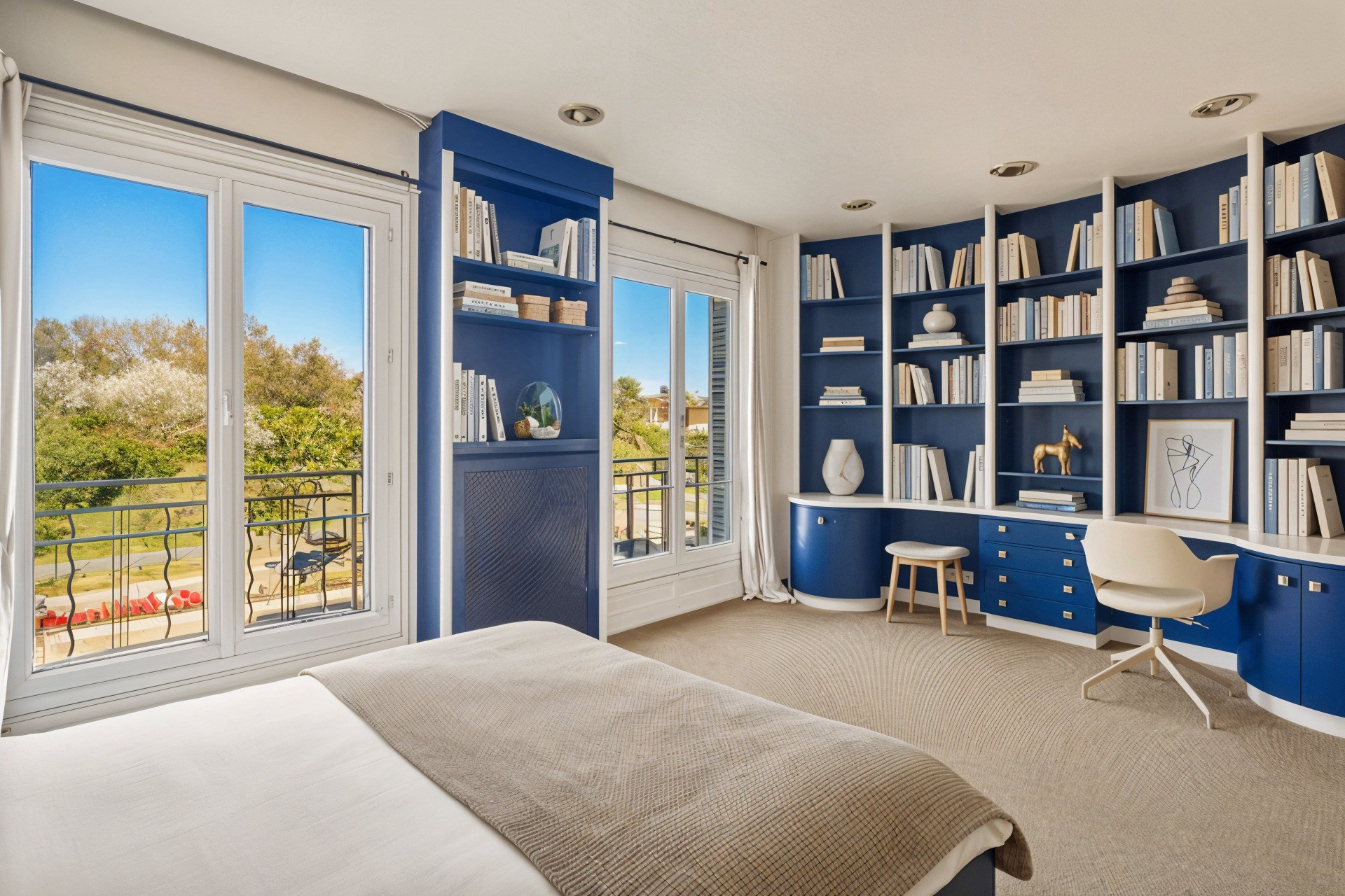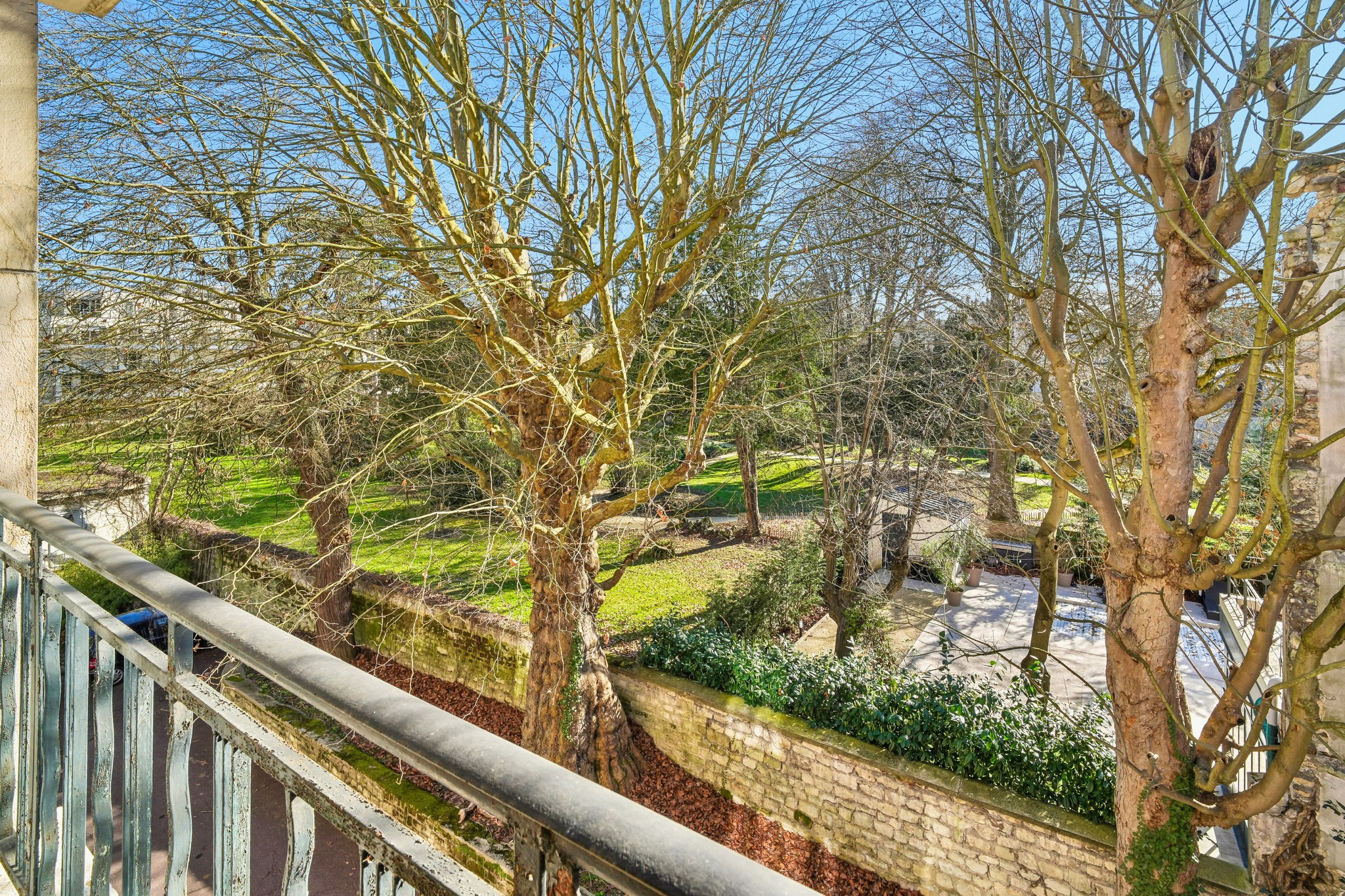 Aux deux derniers étages d'un bel immeuble en pierre de taille situé à proximité immédiate du parc Edmond de Rothschild, duplex traversant très ensoleillé, sans vis-à-vis. Entrée, grande pièce à vivre de 50 m² ouvrant de plain-pied sur une grande terrasse plein sud avec vue dégagée sur jardin, cuisine américaine, 4 belles chambres (25, 17, 17 et 15 m²), possibilité 5ème chambre, 3 salles de bains, 3 wc, buanderie. Grande véranda (30 m²) à rénover (salle de sport ou bureau ou jardin d'hiver). Cave. Local vélos. Gardien. Possibilité d'acquérir en sus un box dans la cour (30 000 euros) et une chambre de service (70 000 euros). Proximité écoles réputées : Collège Parchamp, Lycée Notre-Dame de Boulogne, Dupanloup.