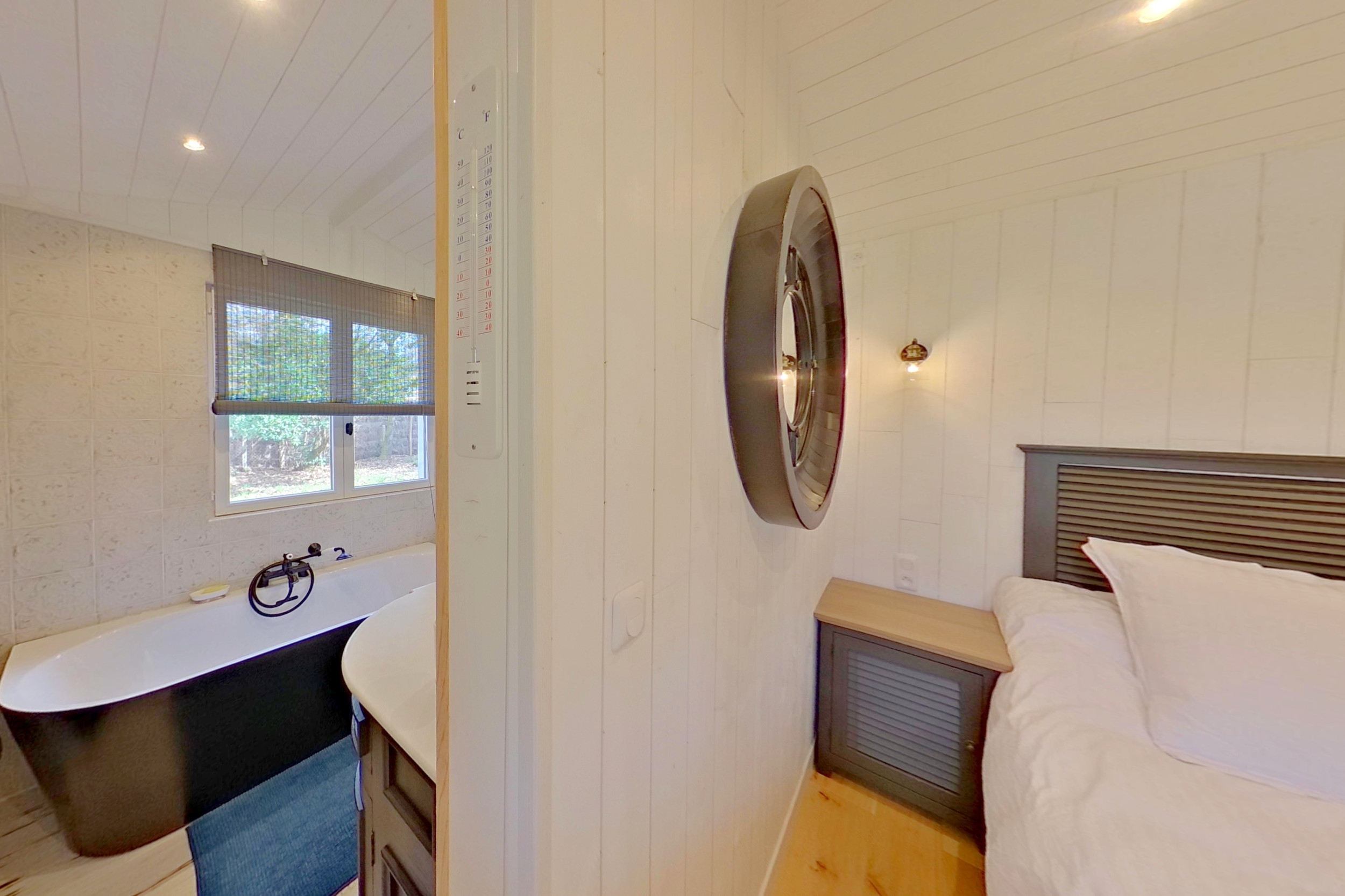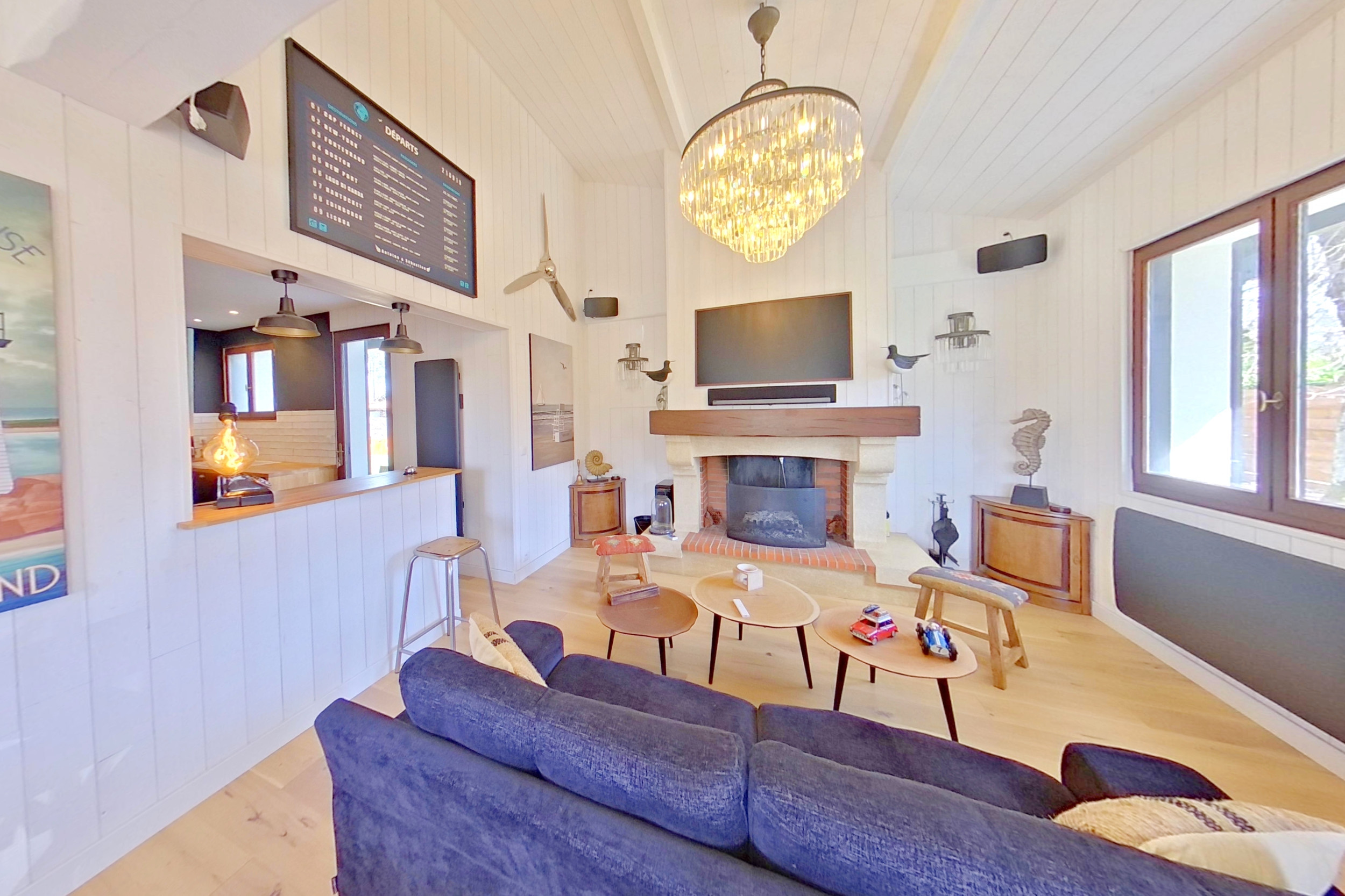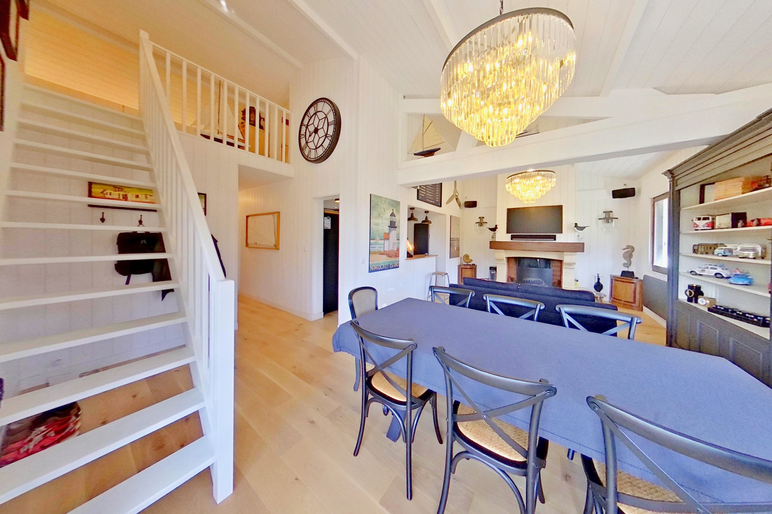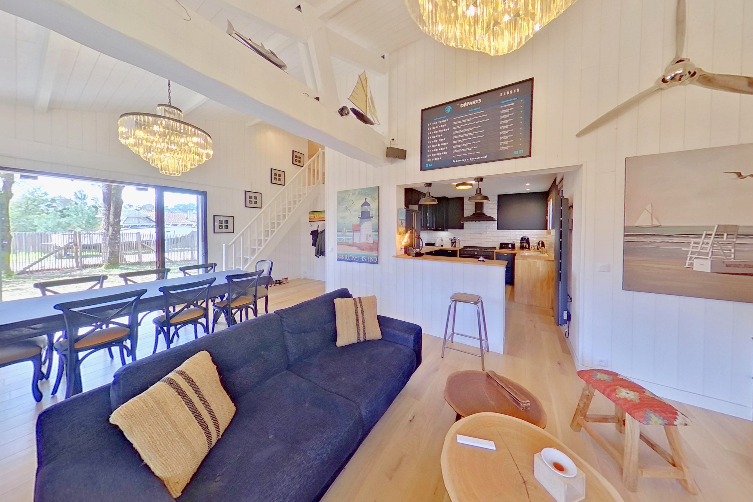 Idéalement située dans un environnement calme et arboré en bordure du canal des Étangs, à 7 mn de l'Océan (plage du Grand Crohot) et 4 mn du centre de Lège, maison de type Landais entièrement rénovée. Grande pièce de vie avec cheminée, cuisine ouverte attenante entièrement équipée, 4 belles chambres (dont une suite parentale avec dressing, salle de bains et wc), salle de douche, buanderie, wc séparés. Piscine possible. Rénovation de qualité avec des matériaux haut de gamme. La maison peut être vendue entièrement meublée (20 000 euros en sus). Accès facile aux plages océanes et à la piste cyclable au milieu des pins qui dessert tous les villages de la presqu'île du Cap Ferret.