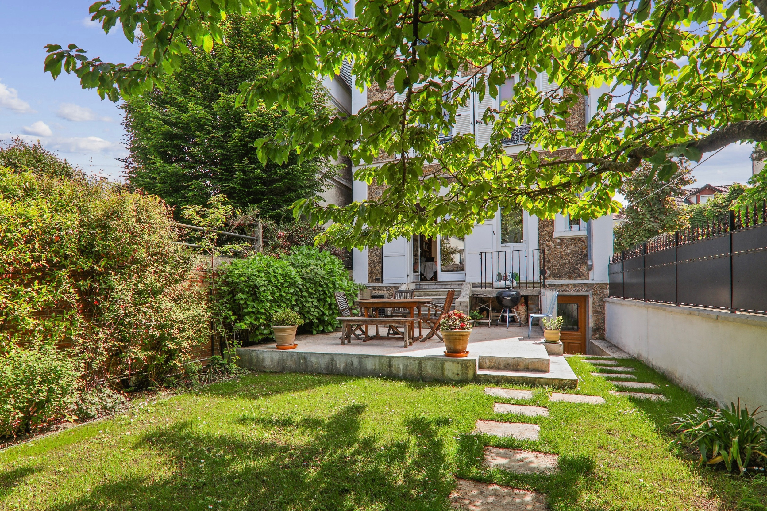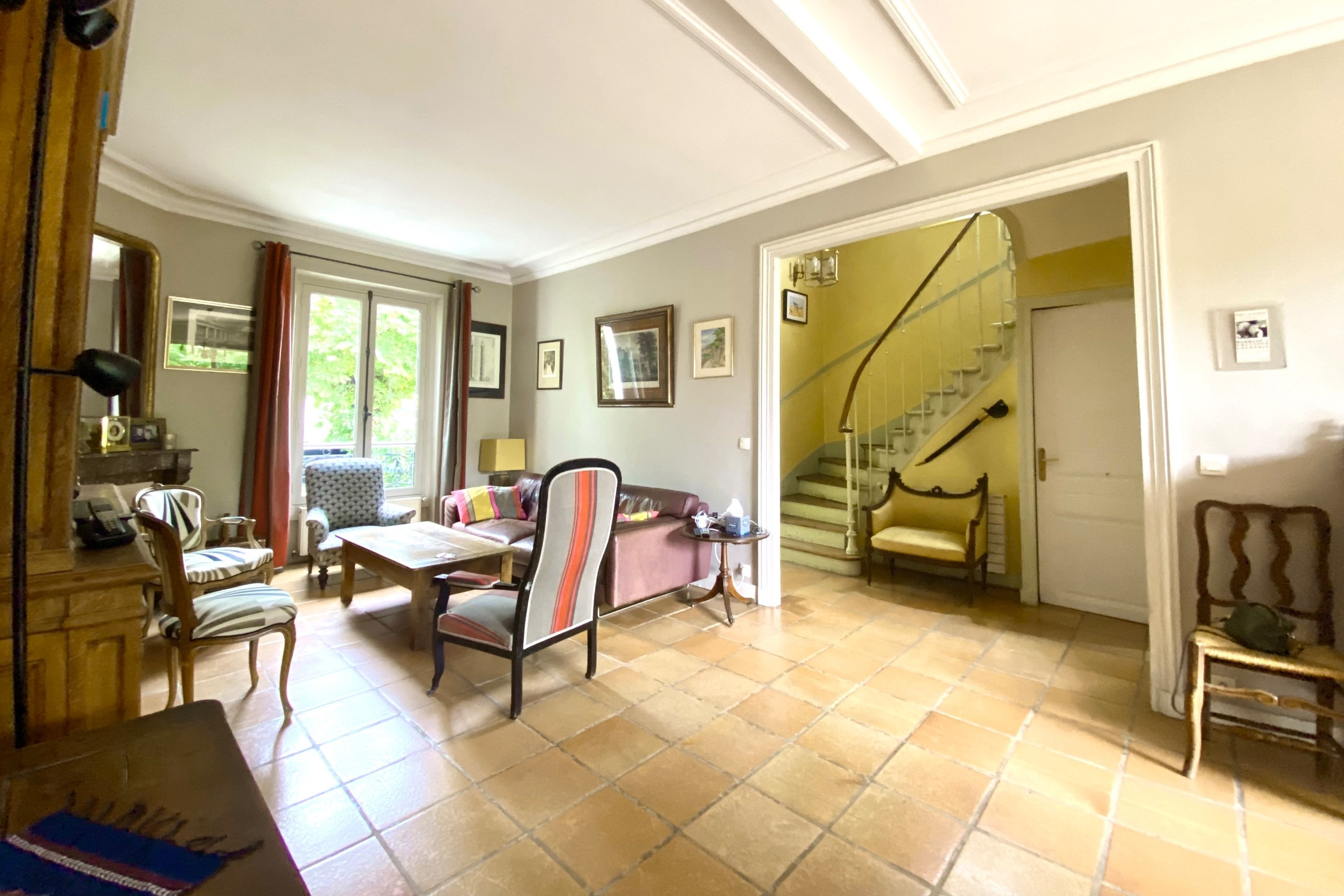 Idéalement située près des commerces et de la gare des Vallées, belle maison ancienne avec jardin arboré totalement au calme sur impasse privée. Entrée, belle pièce de vie traversante avec cheminée donnant sur terrasse et jardin, cuisine séparée, wc invités. Au premier étage : 2 belles chambres (15 m²) avec chacune sa salle de bains et wc. Au deuxième étage : 3 chambres, salle de bains et wc. Au dernier étage : grande chambre de 49 m² avec cabinet de toilette. Sous-sol total (cave à vin, chaufferie, buanderie, atelier) avec accès direct sur le jardin. Abri pour 2 voitures. A proximité du centre aquatique, de la coulée verte et du collège Albert Camus.