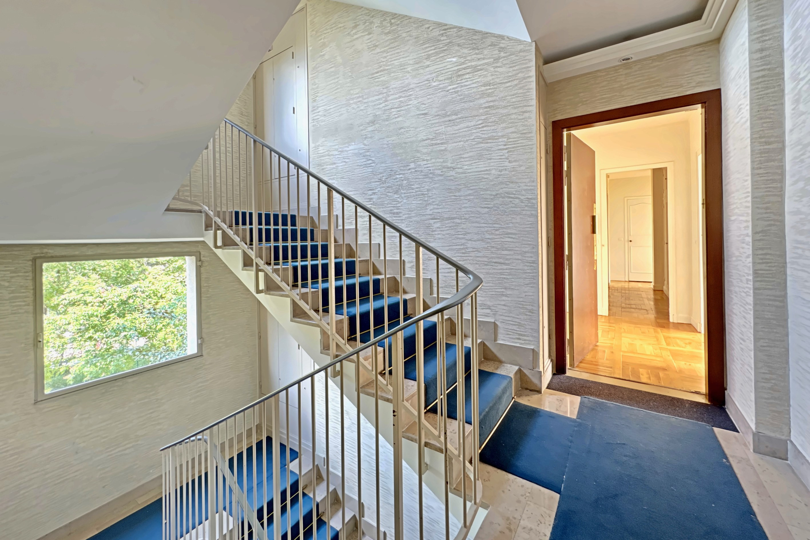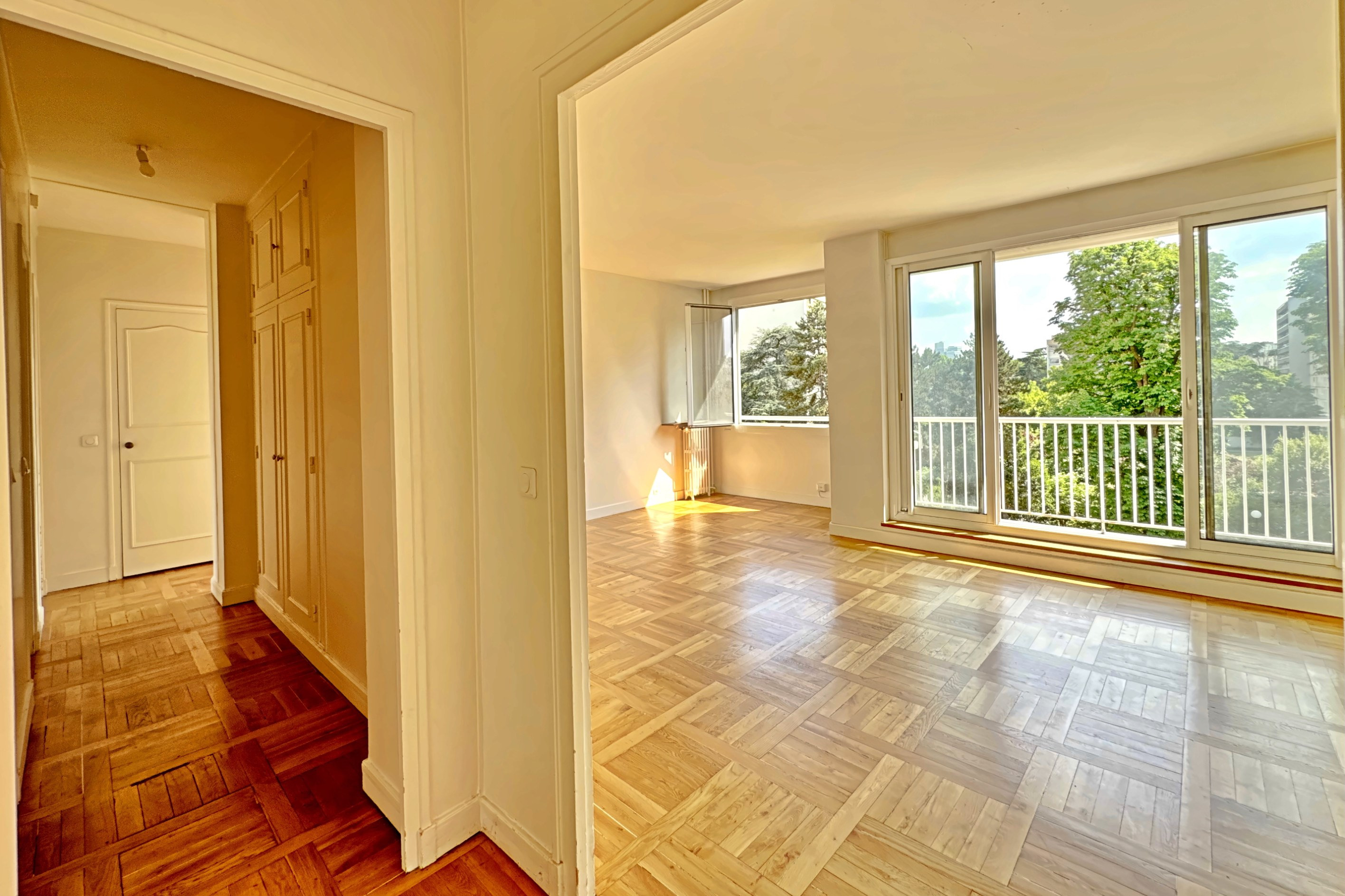 Dans une résidence très recherchée pour son grand parc privatif, appartement à rénover, très ensoleillé (orienté sud), totalement au calme sur jardin. Entrée, double séjour avec grandes portes-fenêtres ouvrant sur large balcon surplombant le parc, cuisine séparée, 2 belle chambres, salle de bains, buanderie, wc. Cave. Excellent plan sans perte de place. Vue dégagée. Gardien. Local vélos.