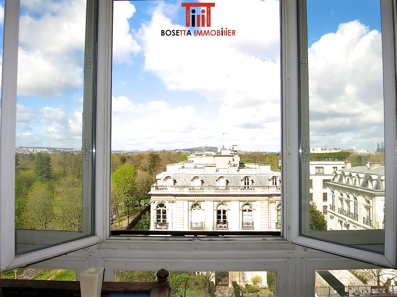 Au dernier étage d'un immeuble ancien de standing idéalement situé à proximité des Jardins du Ranelagh, appartement très ensoleillé comprenant : entrée, double séjour d'angle de 42 m² (exposé sud et ouest) avec magnifique vue totalement dégagée sans aucun vis-à-vis, cuisine avec office, 3 belles chambres (17, 16 et 11 m²), salle de bains, salle de douche, 2 wc. Cave. Beaux volumes (hauteur sous plafond : 3,15 m). Excellent plan. Gardien. Parking possible à l'achat dans l'immeuble (25 000 euros).