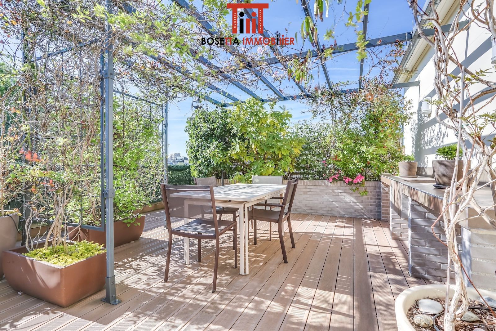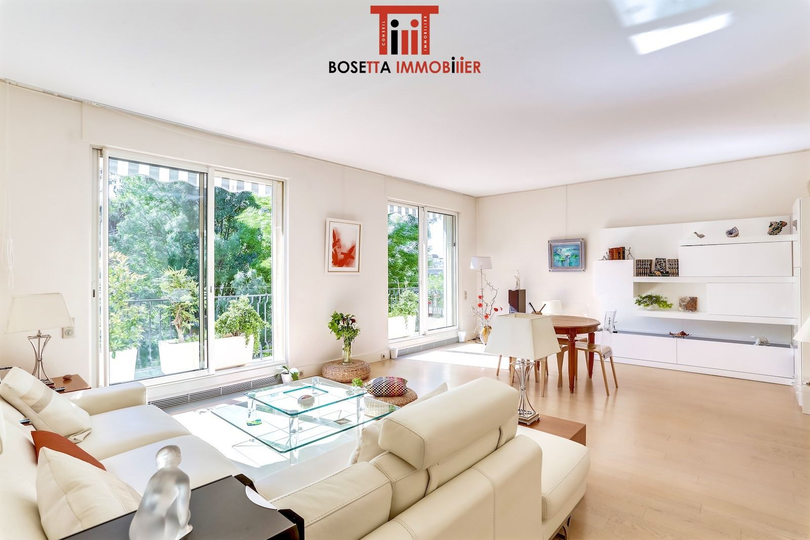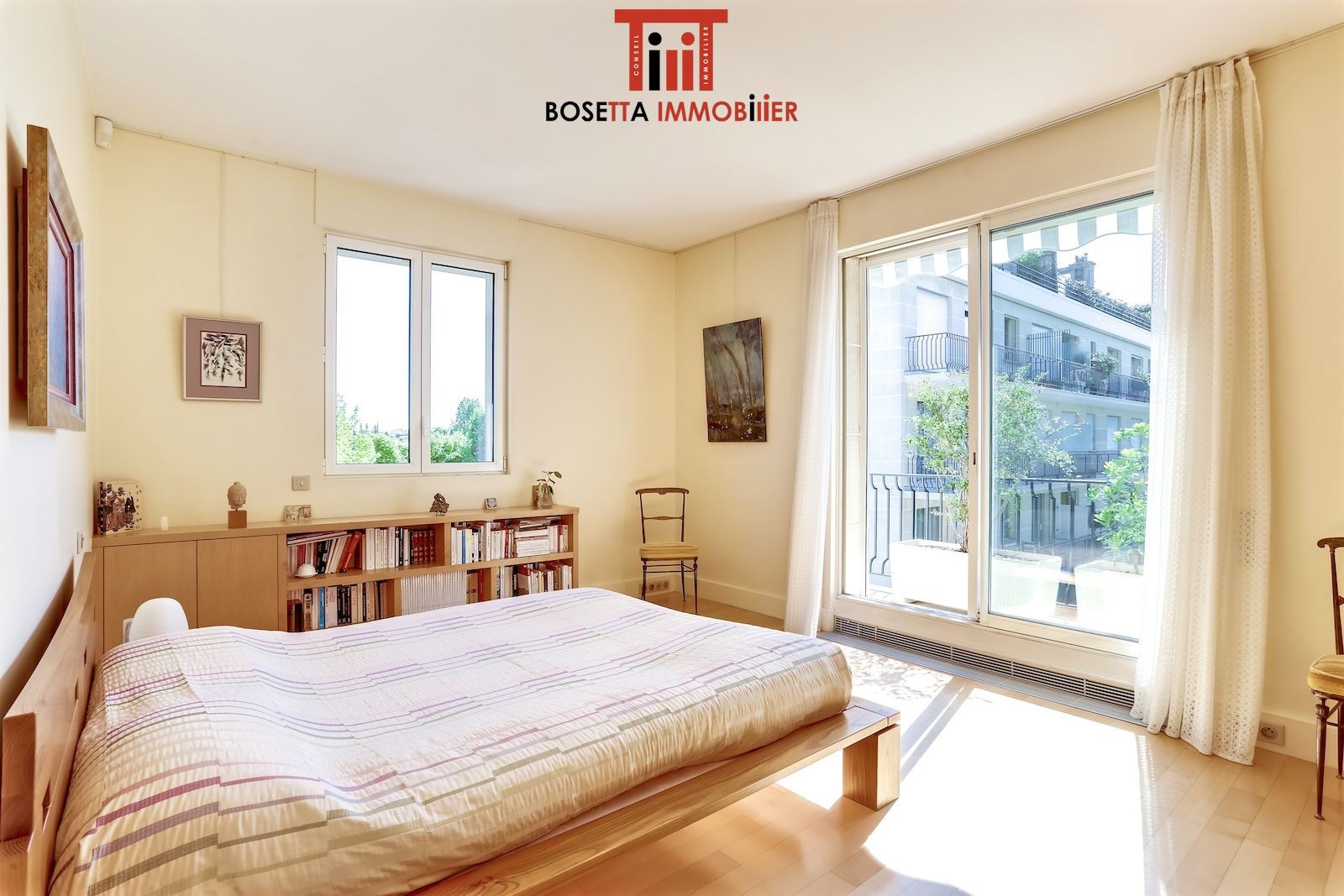 Aux derniers étages d'un immeuble de standing situé à proximité de l'Hôpital Américain et des commerces Bineau/île de la Jatte, appartement d'angle très ensoleillé (orienté sud-est/sud-ouest) au calme absolu sur jardins. Entrée, double séjour de 38 m² avec larges baies vitrées, cuisine séparée, bureau, jardin d'hiver, 2 chambres, salle de bains, salle de douche, 2 wc. Magnifique terrasse arborée avec vue à 360° sur la Tour Eiffel et la Défense sans vis-à-vis. Cave. Parking. Gardien. Appartement en parfait état. Electricité aux normes. Possibilité d'acquérir en sus un studio indépendant de 34 m² refait à neuf (réunissable avec l'appartement) avec balcon et parking (350 000 euros). Pour plus d'informations ou pour organiser une visite, merci de contacter Frank BOSETTA au 06 72 14 65 96 ou votre interlocuteur habituel chez BOSETTA IMMOBILIER. Nous sommes également à votre disposition si vous souhaitez vendre ou faire estimer un bien immobilier à Paris 17ème, 16ème, 8ème, 9ème ou à Neuilly.