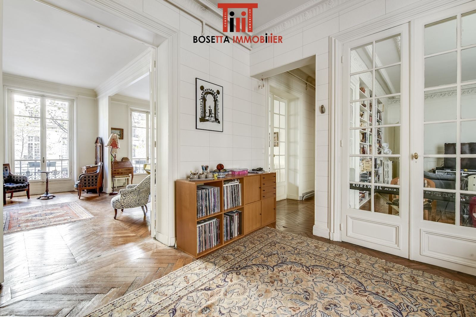 Dans un immeuble haussmannien de standing idéalement situé entre le Parc Monceau et la place du Général Catroux, appartement familial et de réception au premier étage comprenant : galerie d'entrée, double séjour de 54 m² avec parquet en point de Hongrie et cheminées, salle à manger, cuisine, 4 chambres (possibilité 5), 2 salles de bains, buanderie, 2 wc. 2 caves. Beaux volumes (hauteur sous plafond : 3,30 m). Excellent plan. Gardien. Possibilité profession libérale. Pour plus d'informations ou pour organiser une visite, merci de contacter Frank BOSETTA au 06 72 14 65 96 ou votre interlocuteur habituel chez BOSETTA IMMOBILIER. Nous sommes également à votre disposition si vous souhaitez vendre ou faire estimer un bien immobilier à Paris 17ème, 16ème, 8ème, 9ème ou à Neuilly.