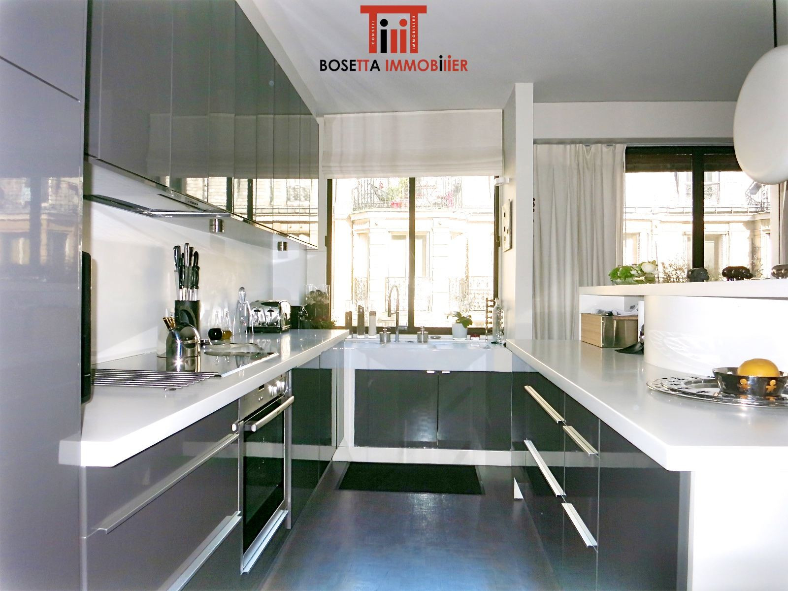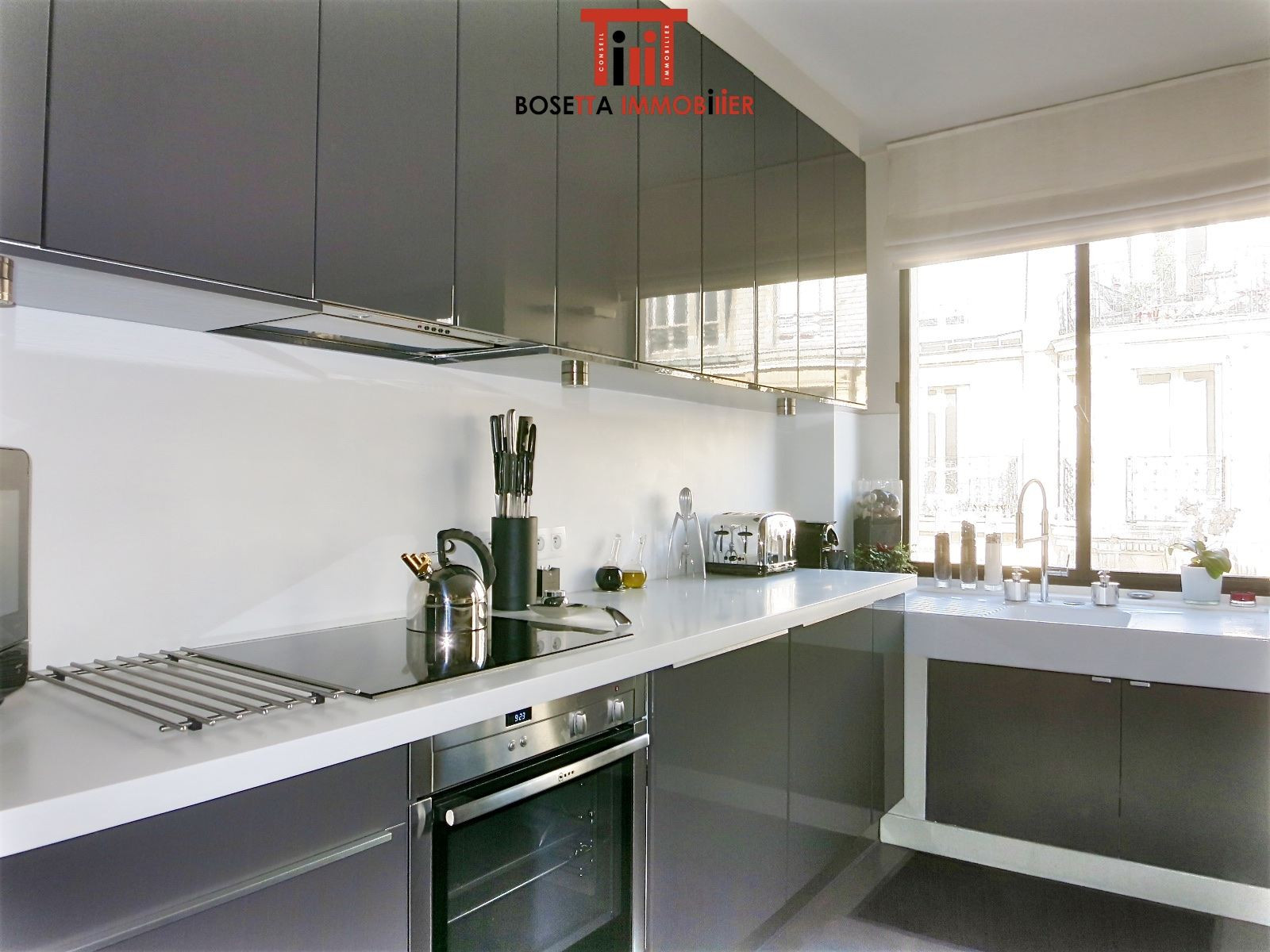 Paris 17ème • Péreire • Ternes • appartement 80 m² carrez + balcon + terrasse • 5ème étage • 1 (ou 2) chambre(s). Exclusivité. Dans un immeuble récent avec gardien situé dans une rue calme à proximité du boulevard Péreire, appartement traversant très lumineux entièrement rénové comprenant : entrée, grand double séjour de 44 m² avec terrasse et cuisine américaine entièrement équipée, belle suite parentale (21 m²) avec balcon totalement au calme sur jardin (possibilité 2ème chambre), salle de bains, wc séparés. Cave. Possibilité parking dans l'immeuble en sus (40 000 euros). Electricité aux normes. Pour plus d'informations ou pour organiser une visite, merci de contacter Alain ETJEMESIAN au 06 49 35 21 13 ou votre interlocuteur habituel chez BOSETTA IMMOBILIER. Nous sommes également à votre disposition si vous souhaitez vendre ou faire estimer un bien immobilier à Paris 17ème, 16ème, 8ème, 9ème, Neuilly ou Levallois.