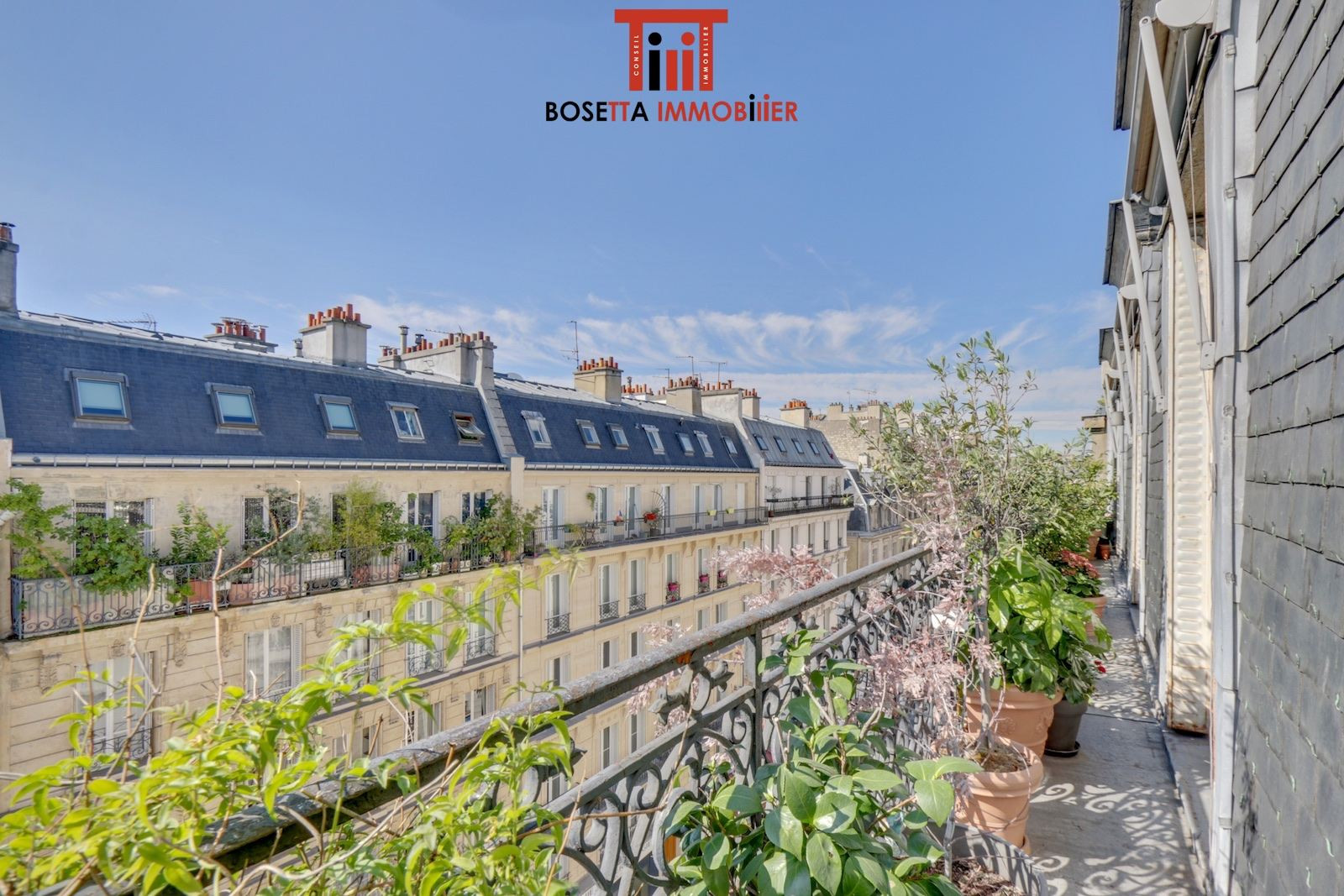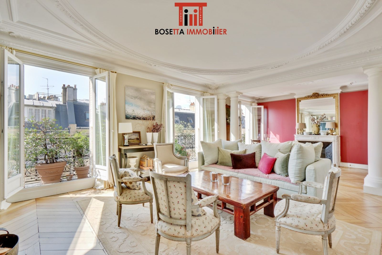 Au dernier étage d'un immeuble haussmannien idéalement situé dans la très élégante et calme rue de Turin, appartement familial en parfait état très ensoleillé (orienté sud-ouest). Entrée, double séjour de 44 m² avec parquet en point de Hongrie, moulures, cheminées et balcon filant, grande cuisine dînatoire (20 m²) totalement équipée, 3 belles chambres (23, 22 et 21 m²), dressing, buanderie, 2 salles de bains, 3 wc. Nombreux rangements. Excellent plan. Prestations de qualité avec des matériaux haut de gamme. Grande cave (11 m²). Proximité marché bio des Batignolles. Sectorisation Condorcet. Pour plus d'informations ou pour organiser une visite, merci de contacter Frank BOSETTA au 06 72 14 65 96 ou votre interlocuteur habituel chez BOSETTA IMMOBILIER. Nous sommes également à votre disposition si vous souhaitez vendre ou faire estimer un bien immobilier à Paris 17ème, 16ème, 8ème, 9ème, Neuilly ou Levallois.