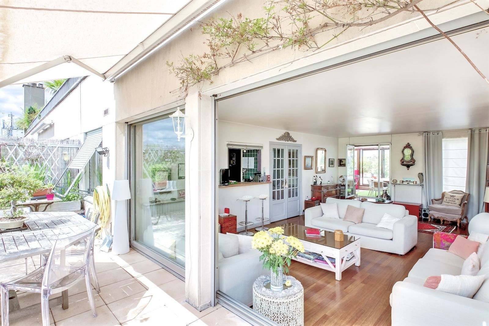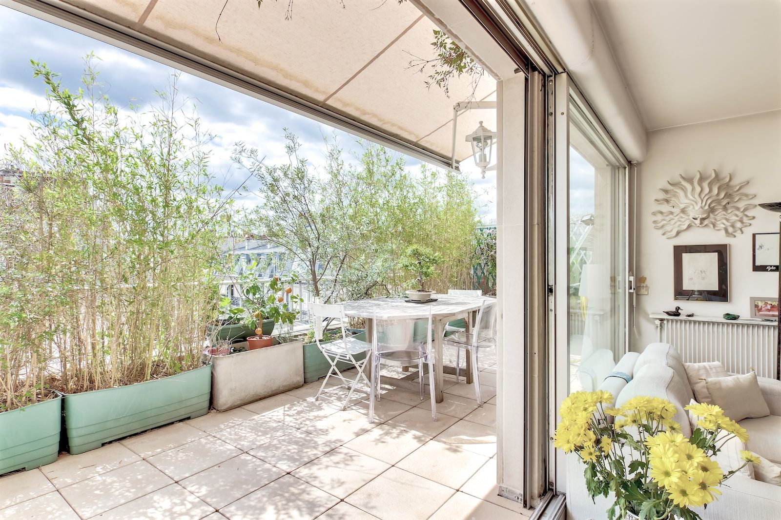 Sur le toit d'un immeuble récent situé à deux pas du Parc Monceau, penthouse et son rooftop de 180 m² avec vue à 360° sur tout Paris. Entrée, pièce à vivre de 44 m² très ensoleillée (orientée sud) donnant de plain-pied sur les 2 terrasses, salle à manger sous veranda (23 m²), cuisine américaine, 3 belles chambres (14 m² chacune), possibilité 4ème chambre, salle de bains, salle de douche, 2 wc. Cave. Gardien. Possibilité parking dans l'immeuble en sus (50 000 euros). Proche commerces, transports, bonnes écoles et Parc Monceau. Pour plus d'informations ou pour organiser une visite, merci de contacter Frank BOSETTA au 06 72 14 65 96 ou votre interlocuteur habituel chez BOSETTA IMMOBILIER. Nous sommes également à votre disposition si vous souhaitez vendre ou faire estimer un bien immobilier à Paris 17ème, 16ème, 8ème, 9ème, Neuilly ou Levallois.