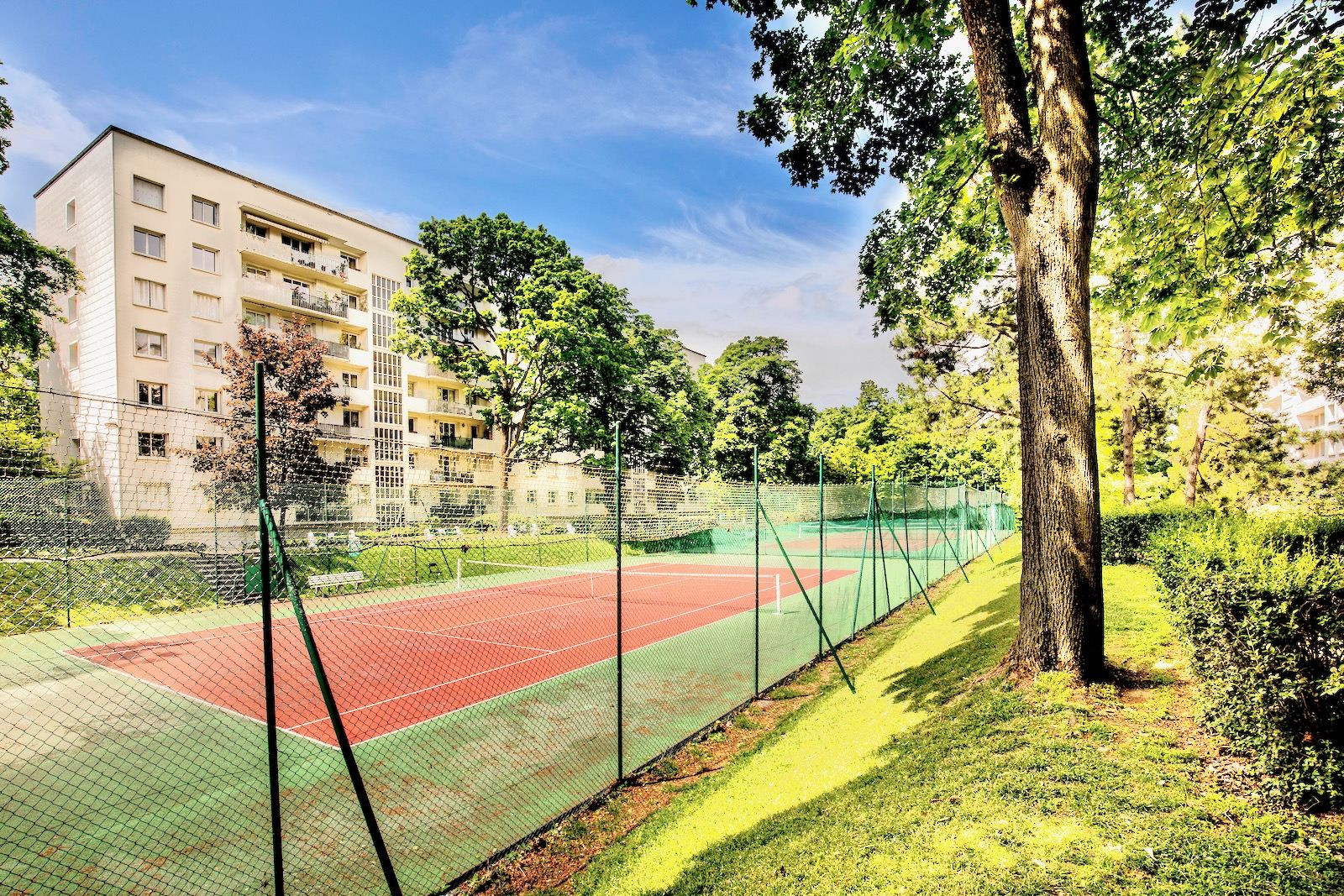 Dans une résidence calme et familiale avec un parc arboré et terrains de tennis privés situé dans le quartier du Val d'Or, appartement très ensoleillé (orienté ouest) comprenant : entrée, belle pièce à vivre de 29 m² ouvrant sur le balcon avec cuisine américaine entièrement équipée, 4 chambres (11, 10, 10 et 9 m²), salle de bains, salle d'eau, wc séparés. Nombreux placards. Cave. Gardien. Electricité aux normes. Commerces, transports (gare du Val d'Or) et écoles à proximité.