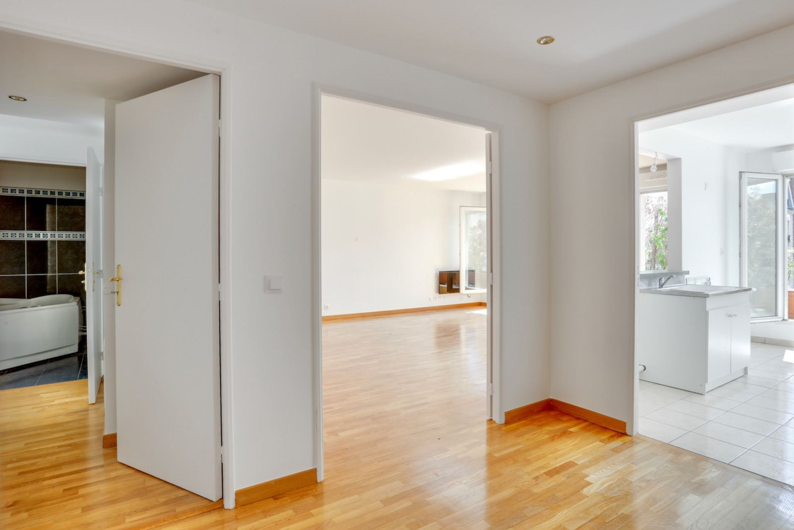 Dans un immeuble récent situé près de l'Église, appartement traversant rénové comprenant : entrée, séjour de 30 m² ouvrant sur belle terrasse de 28 m² très ensoleillée (exposée sud-ouest), cuisine à aménager, chambre parentale (17 m² ) avec salle de bains, rangements et balcon, 2 chambres enfants (12 et 10 m²), salle de bains avec wc, wc indépendant. Appartement en parfait état totalement au calme. Vue dégagée sur jardin. Proximité rue du Président Wilson, transports et écoles. Cave. Possibilité d'acquérir 1 ou 2 parkings dans l'immeuble (25 000 euros chacun).