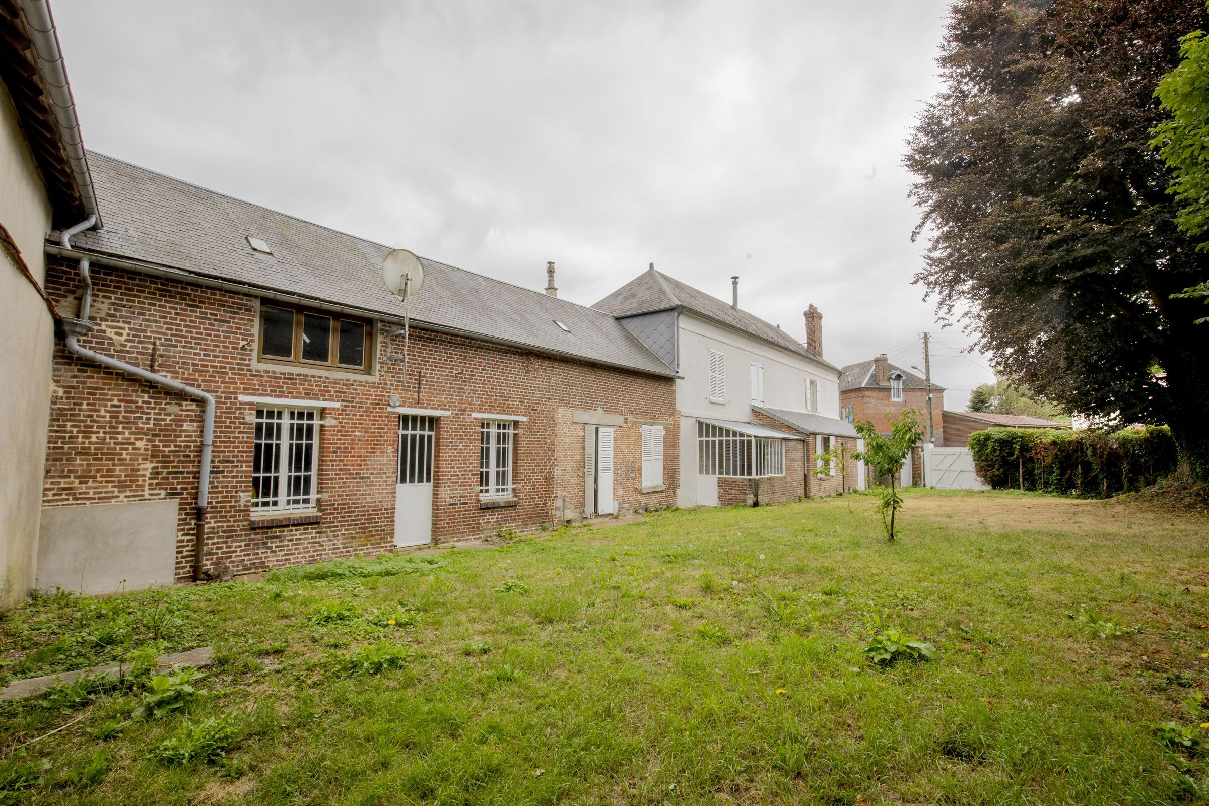 Andeville (60570) • Oise • maison 220 m² + maison d'invités 80 m² • terrain 1000 m² • 6 chambres. Située à 65 km de Paris, 28 km de Beauvais et à 4 km de Méru, belle maison de ville sur 2 niveaux comprenant : au rez-de-chaussée, entrée, double séjour avec cheminée, salle à manger, bureau, cuisine à aménager, buanderie, wc. A l'étage : 3 chambres, salle de bains, salle d'eau, wc. Combles aménageables. Maison d'invités comprenant : entrée, séjour, 3 chambres, salle de bains, wc. Grand garage. Possibilité de transformer le garage en grande pièce à vivre avec cuisine, ouvrant sur cour et sur jardin. 2 dépendances. Rénovation et aménagement de l'ensemble à prévoir. Idéal maison de campagne ou résidence principale à une heure de Paris. Gare SNCF Méru (4 km) direct de Paris Gare du Nord.