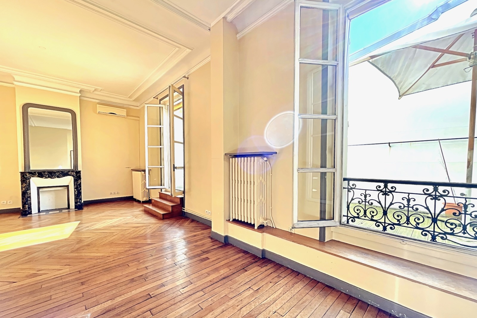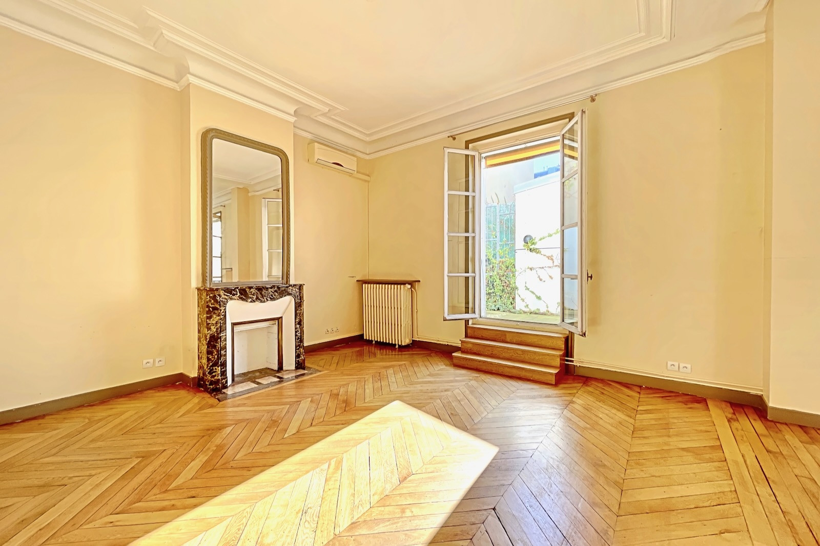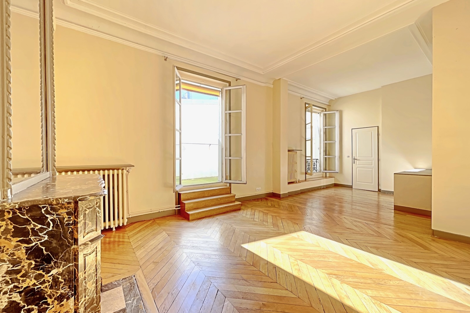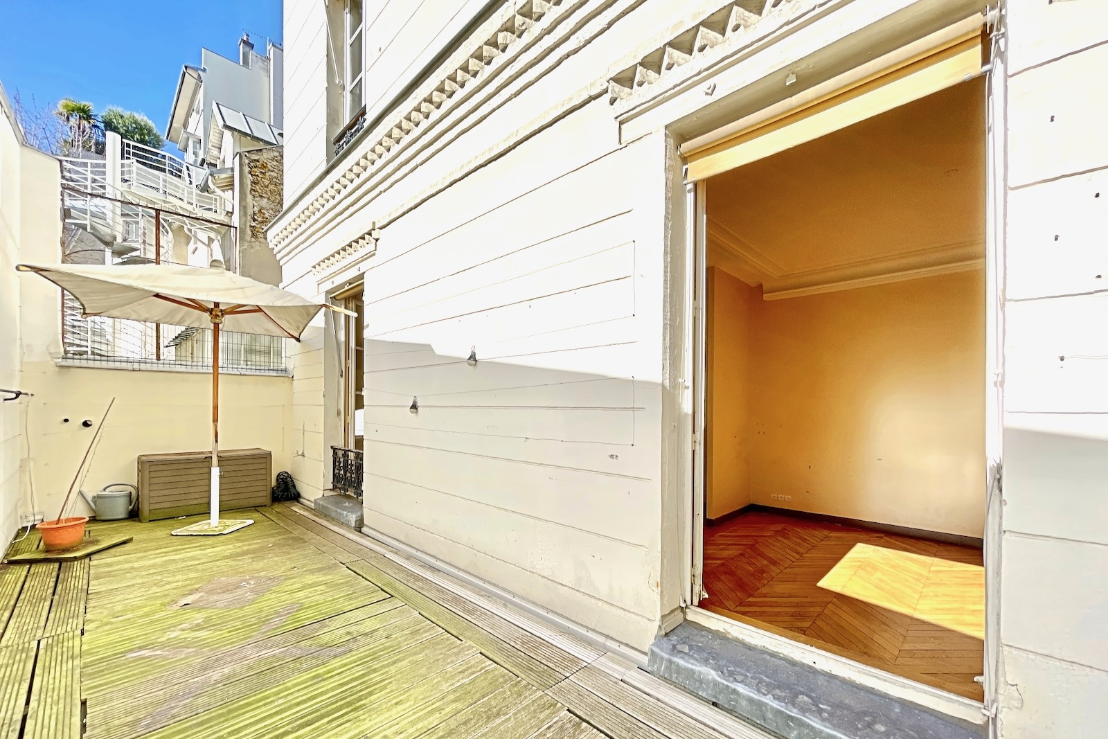 Paris 17ème • Ampère • appartement (ou bureau) 35 m² + terrasse 20 m². Exclusivité. Dans un ancien hôtel particulier idéalement situé dans la très élégante et calme rue Ampère, appartement ou bureau prolongé par une terrasse de 20 m². Belle pièce de 31 m² avec parquet, moulures, cheminée et 2 grandes portes fenêtres ouvrant sur la terrasse, salle d'eau et wc. Possibilité de créer 1 chambre. Beaux volumes (hauteur sous plafond : 3,25 m). Très ensoleillé (orienté plein sud). Calme absolu. Gardienne. Possibilité usage professionnel ou libéral.