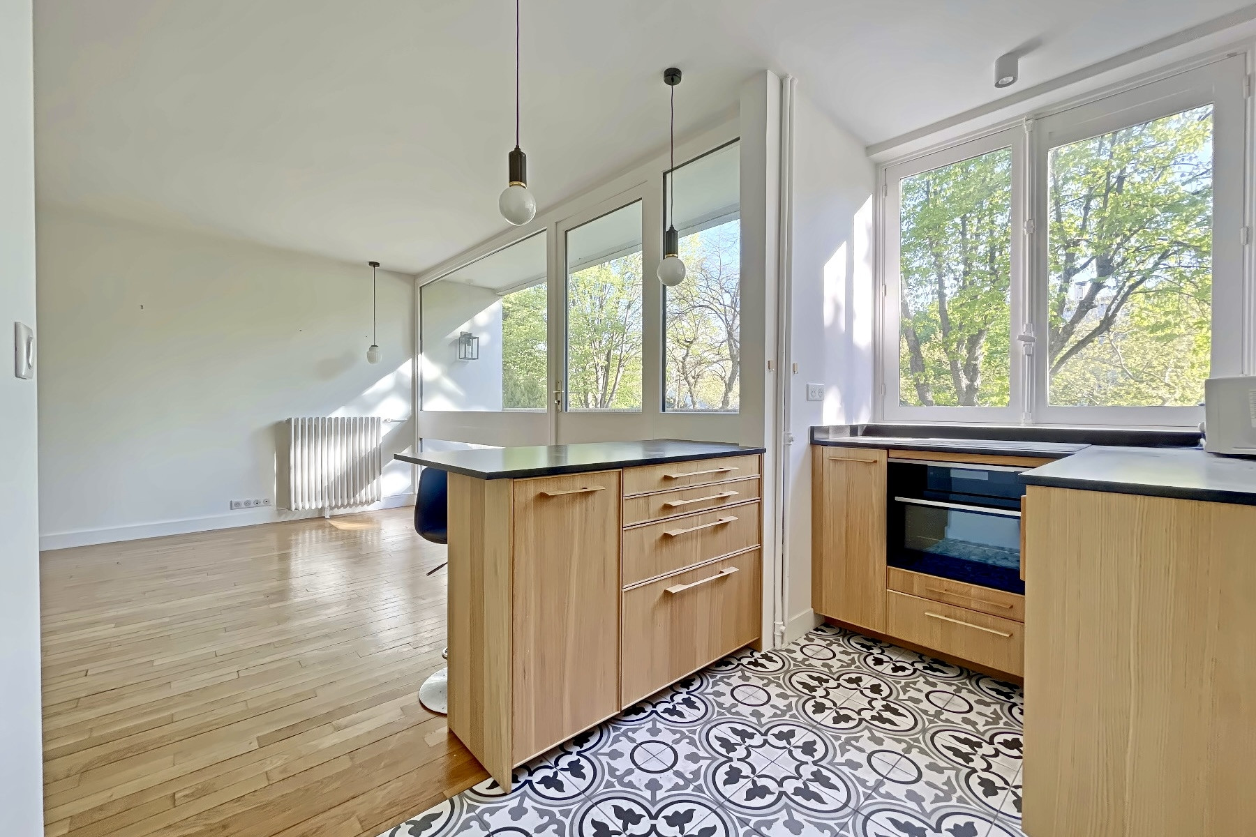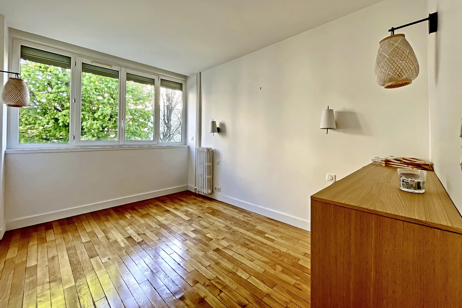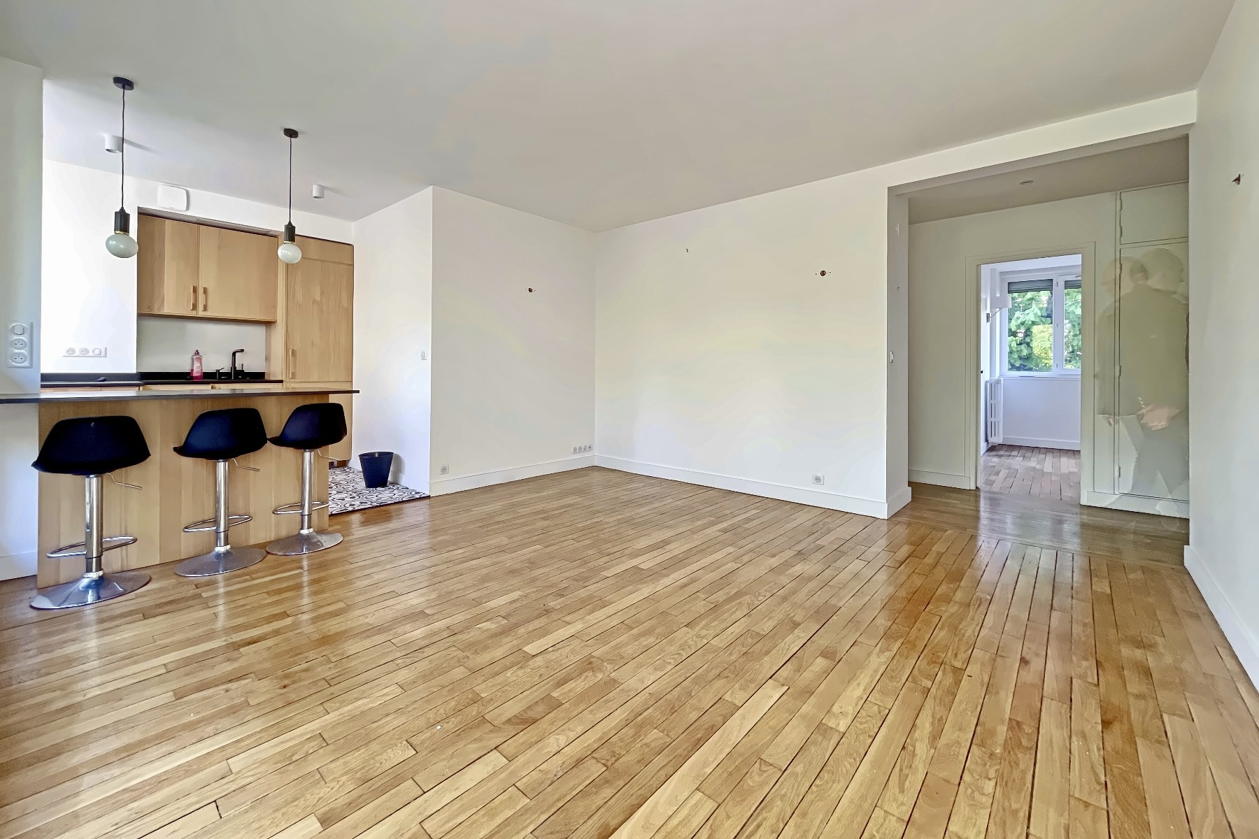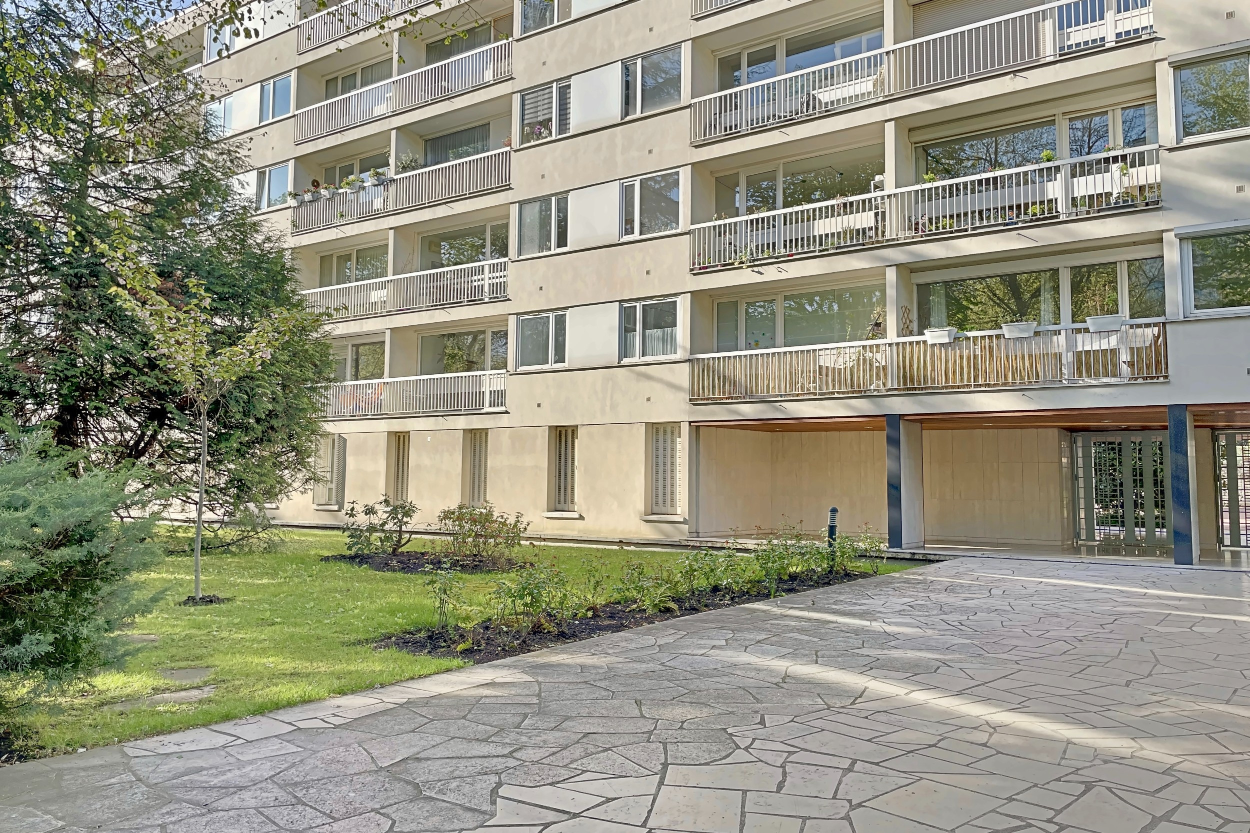 Au 2ème étage d'un immeuble 1960, appartement familial traversant en parfait état comprenant : entrée, séjour lumineux avec parquet donnant sur un balcon, cuisine ouverte aménagée et équipée, 3 chambres totalement au calme sur jardin, salle de bains avec buanderie et douche à l'italienne, wc séparé. Cave. Gardien.